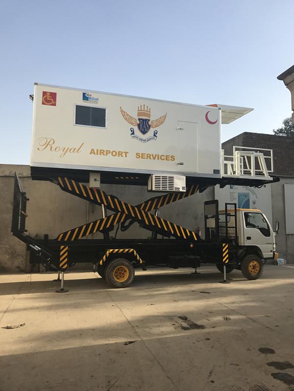 Medical Lifts are used for the transportation of passengers with restricted mobility. The travelling persons are taken on board with the lift at ground level and comfortable transfer from the Medical Lift into the aircraft is possible after lifting.